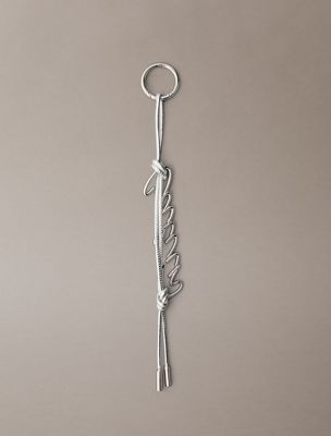 Metalowy brelok do torebki z frędzlami i logo