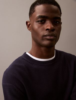 Sweter z bawełny strukturalnej z okrągłym dekoltem