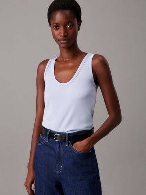 Wąski top bez rękawów z dzianiny ściągaczowej